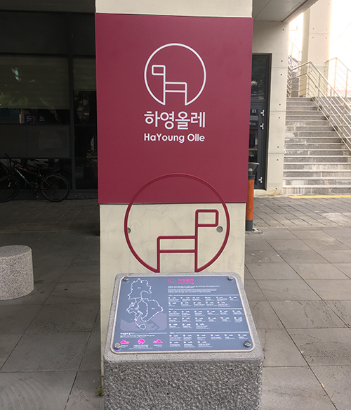 아무리 둘러봐도 도장이 없어서 한참 헤맨 끝에 자기주도학습지원센터 앞에 있는 하영올레 마크를 발견합니다.