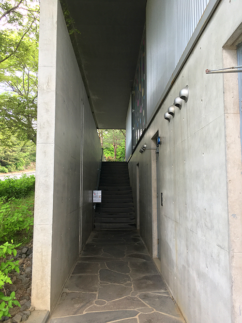 카페를 지나 2전시관으로 가는 길. 아까 봤던 멋드러진 경치 아래쪽으로 연결이 되더라구요. 한쪽에 물이 시원스럽게 내려서 정말 걷기 좋았습니다.