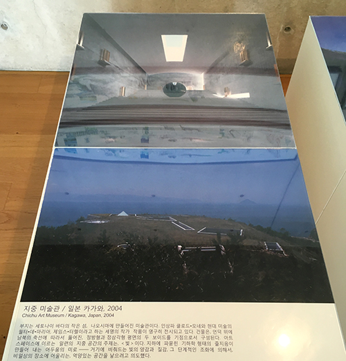 전시관 내부 설명을 보니, 설립자께서 현대 미술과 한국의 전통적인 것을 동시에 담아 낼 수 있는 건축물을 요청하셨다고 합니다.
