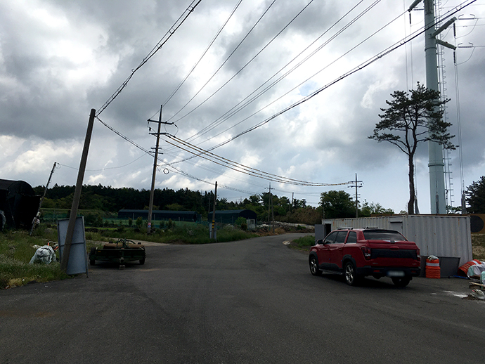 전시를 너무 알차게 본 탓인지 배차가 긴 버스 시간이 얼마 남지 않아서 서둘러 버스정류장으로 이동했습니다. 다시 아까 힘겹게 걸어온 큰 도로로 걸어나가야 되는데요. 안타깝게도 이 구간은 버스가 다니지 않습니다.😭