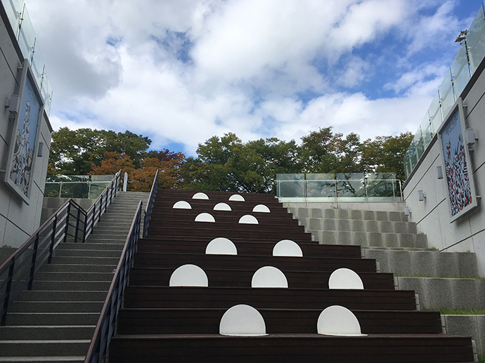 전시를 여유롭게 둘러보고 중앙 입구로 나왔어요. 파란 가을하늘과 더불어 날씨가 너무 좋더라구요. 앞에 펼쳐진 계단과 앉는 공간도 뭔가 디자인적이여서 너무 이뻐서 이곳에서 잠시 쉬는 것도 너무 좋겠더라구요.