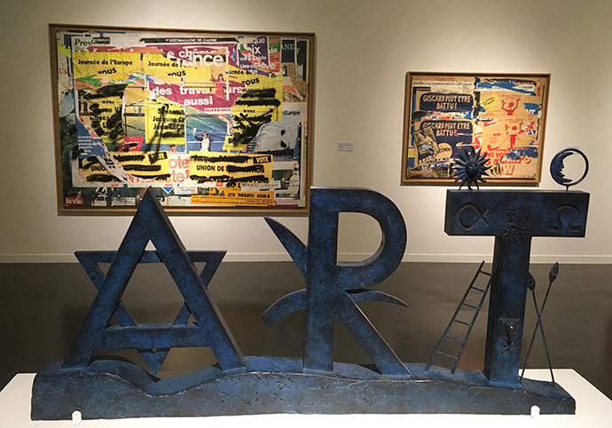 자크 빌레글레는 장 뒤뷔페에 영향을 굉장히 크게 받은 프랑스 화가인데요. 찢어진 포스터를 데콜라주로 상징적인 글자나 이미지로 작업하는 혼합 미디어 예술가입니다.