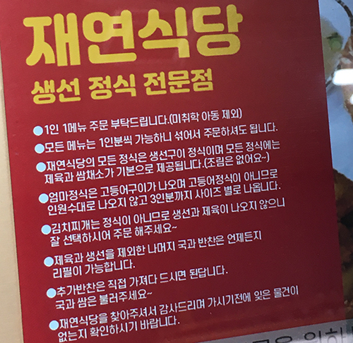 알고 보니 여기는 생선구이 전문점. 조림은 없고, 오직 구이만 판매한다고 하네요.