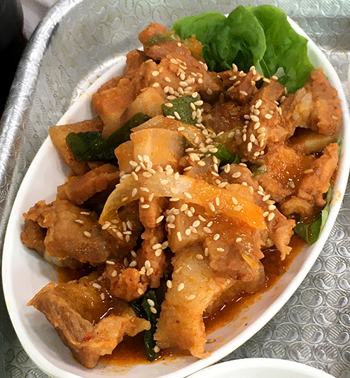 대부분의 정식에는 생선뿐만 아니라 제육볶음과 쌈채소가 기본으로 제공되는데요.