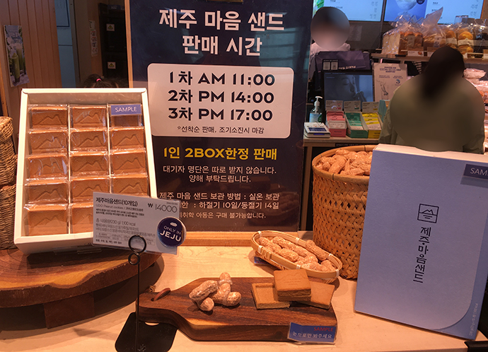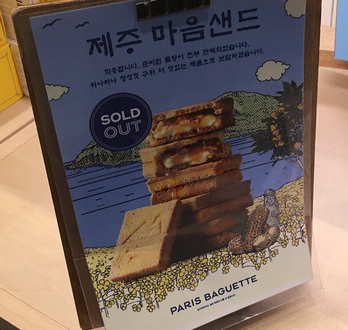 제주 파리 바게트에서는 이렇게 마음샌드라는 것을 팔더라구요.(다른 제주 지점도 파는지는 모르겠습니다.)