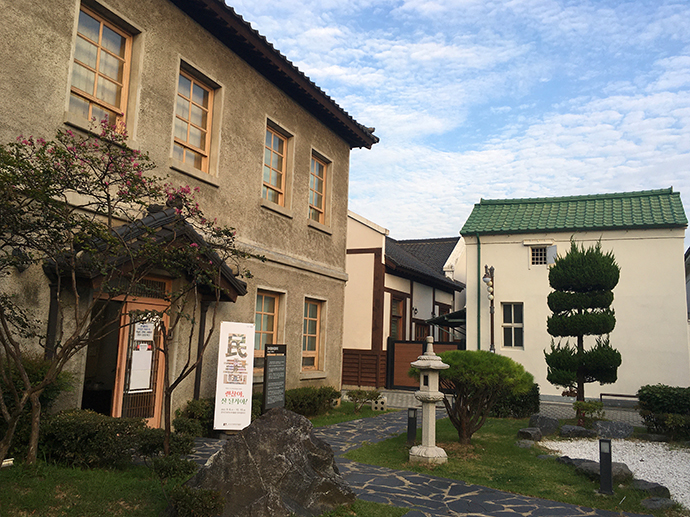 가장 남쪽에 있는 동국사를 나와서 근대문화거리를 이어서 걸었는데요. 거리가 널찍하고 바닥도 뭔가 이뻐서 걷기가 좋았어요. 지나다닐 때마다 간간히 보이는 근대건물들과 이쁜 디자인의 가로등이 정말 매력적이더라구요. 옛 건물들 사이에 뭔가 푸릇한게 보여서 호기심을 안고 들어가 봤습니다.
